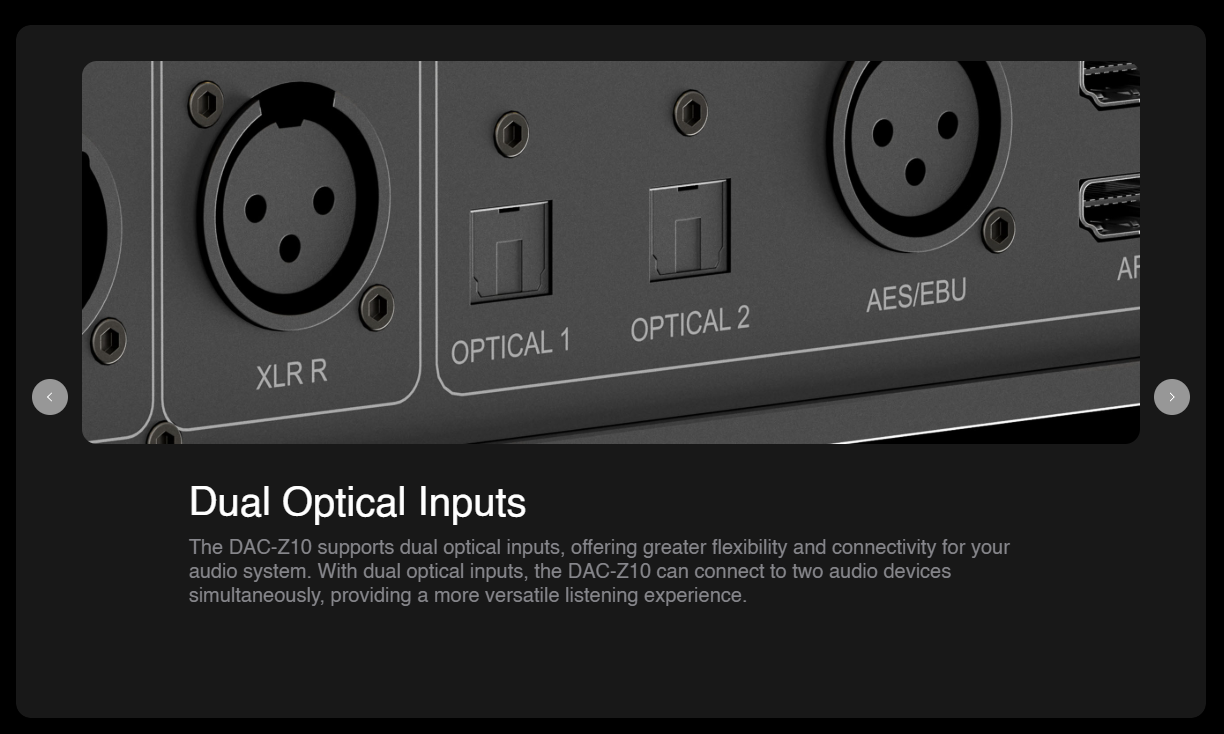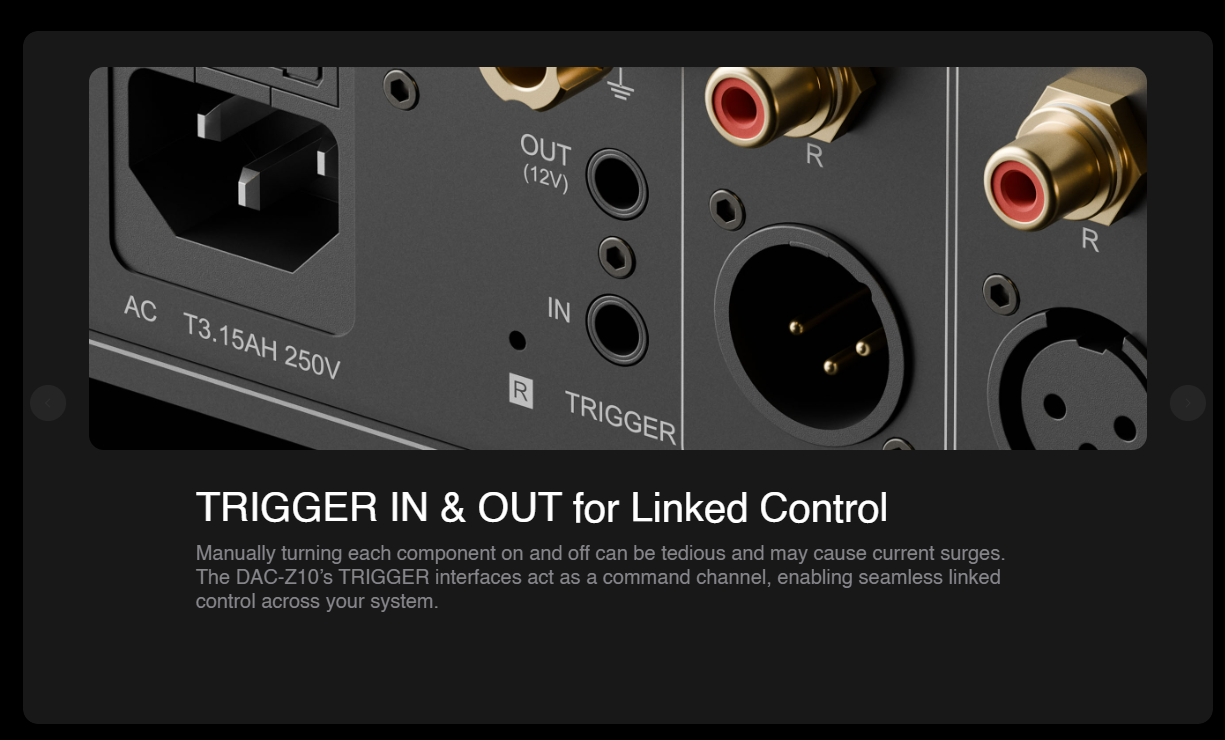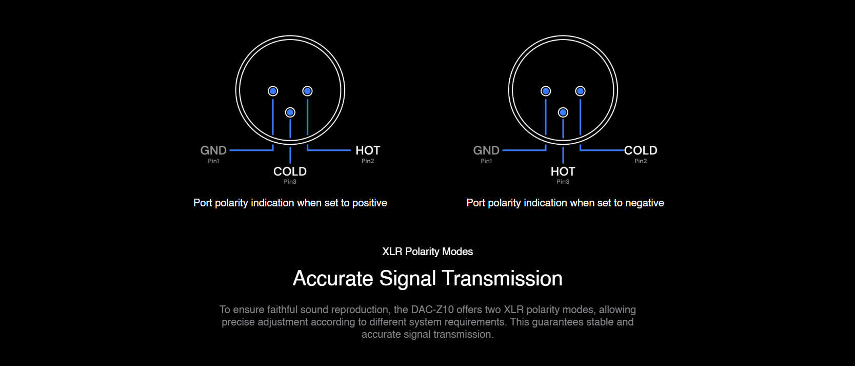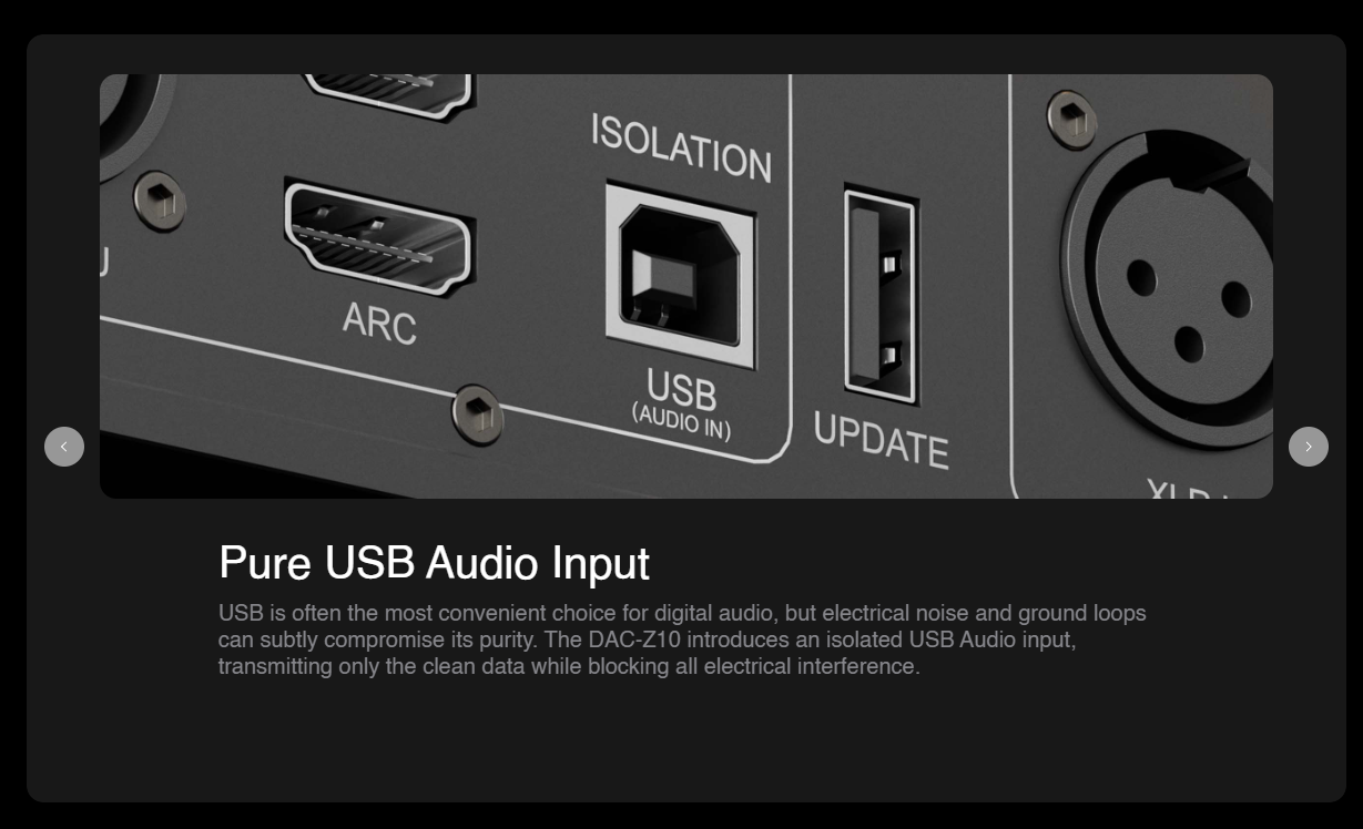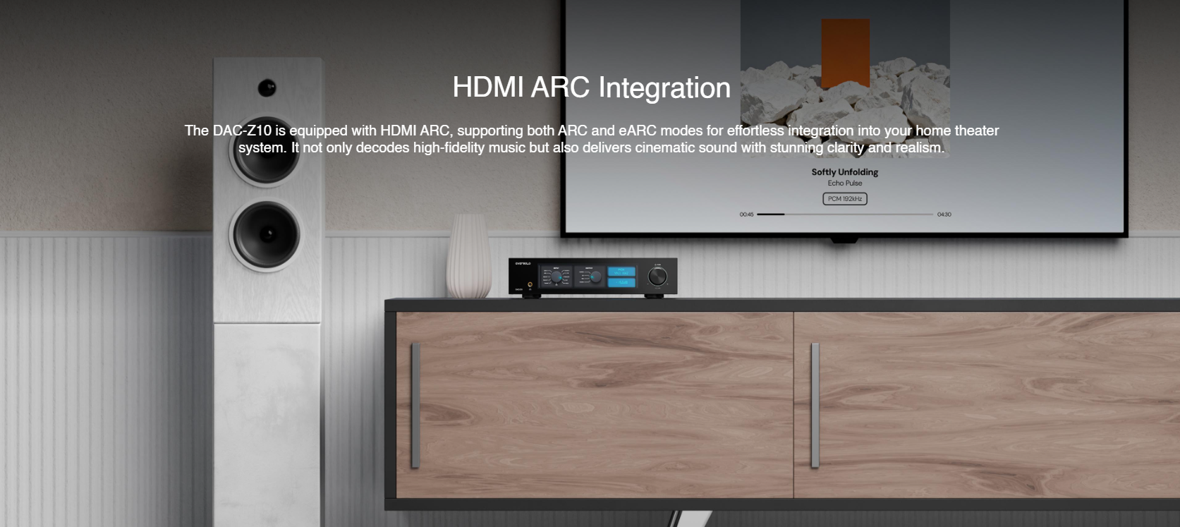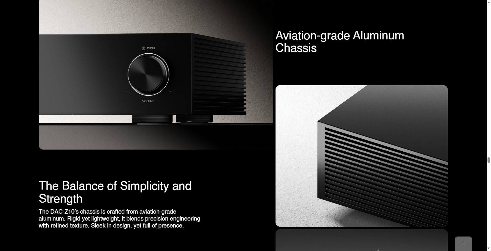 DAC-Z10 採用 Fully Isolated Architecture(FIA),將數碼與類比完全隔離,降低干擾,三組獨立環形變壓器供電,左/右聲道及系統電路分別供電,噪聲低至 42 μV。DAC 部分使用 AK4191 + AK4499 配合 Velvet Sound 技術,兼顧精準與溫暖音色。